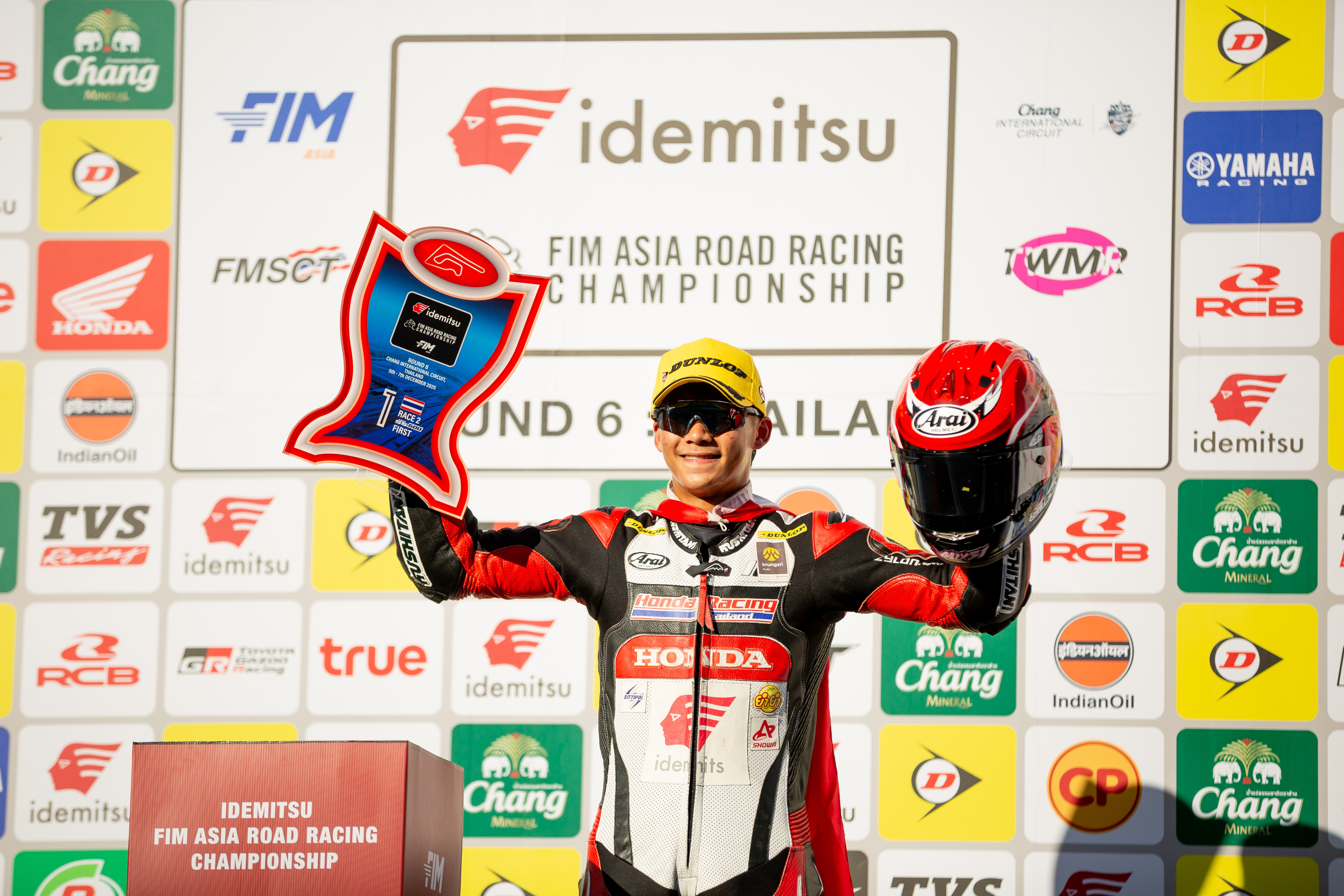 In the Asia Production 250 (AP250) class, Thailand’s two wildcard entrants delivered equally inspiring performances. “Oum” Noprutpong Bunprawes, riding the Honda CBR250RR No. 20, started from P5 and engaged in a relentless chase, consistently closing the gap to the leaders. In a dramatic final-corner showdown, he surged forward to secure P2—earning another home-race podium for Thailand in spectacular fashion.